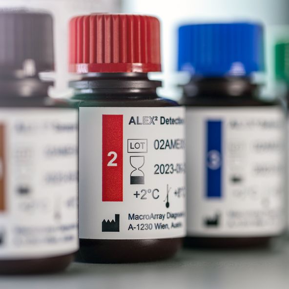 To eliminate CCD-antibody interference, MADx integrated a CCD-blocker to ALEX³ which has the potential to adsorb CCD-specific antibodies. The CCD-blocker is part of every ALEX³ test kit without the need for an additional incubation step.